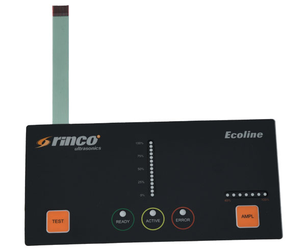 0.25mm及以下的塑料基板稱為薄膜,主要用作薄膜開(kāi)關(guān)的面板層。背面印有各種指示性圖案和文字,指示對(duì)應(yīng)開(kāi)關(guān)鍵位置的操作區(qū)域。厚度選擇要根據(jù)面板和按鍵的大小而定,材質(zhì)厚,觸感增大,響應(yīng)慢;材質(zhì)太薄,摸起來(lái)手感差,回彈不明顯。 0.25mm以上的厚度稱為片材,不適用于三維按鍵成型??勺鳛闊o(wú)按鍵操作區(qū)的指示牌面板,也可作為薄膜開(kāi)關(guān)的襯板,提高其硬度。